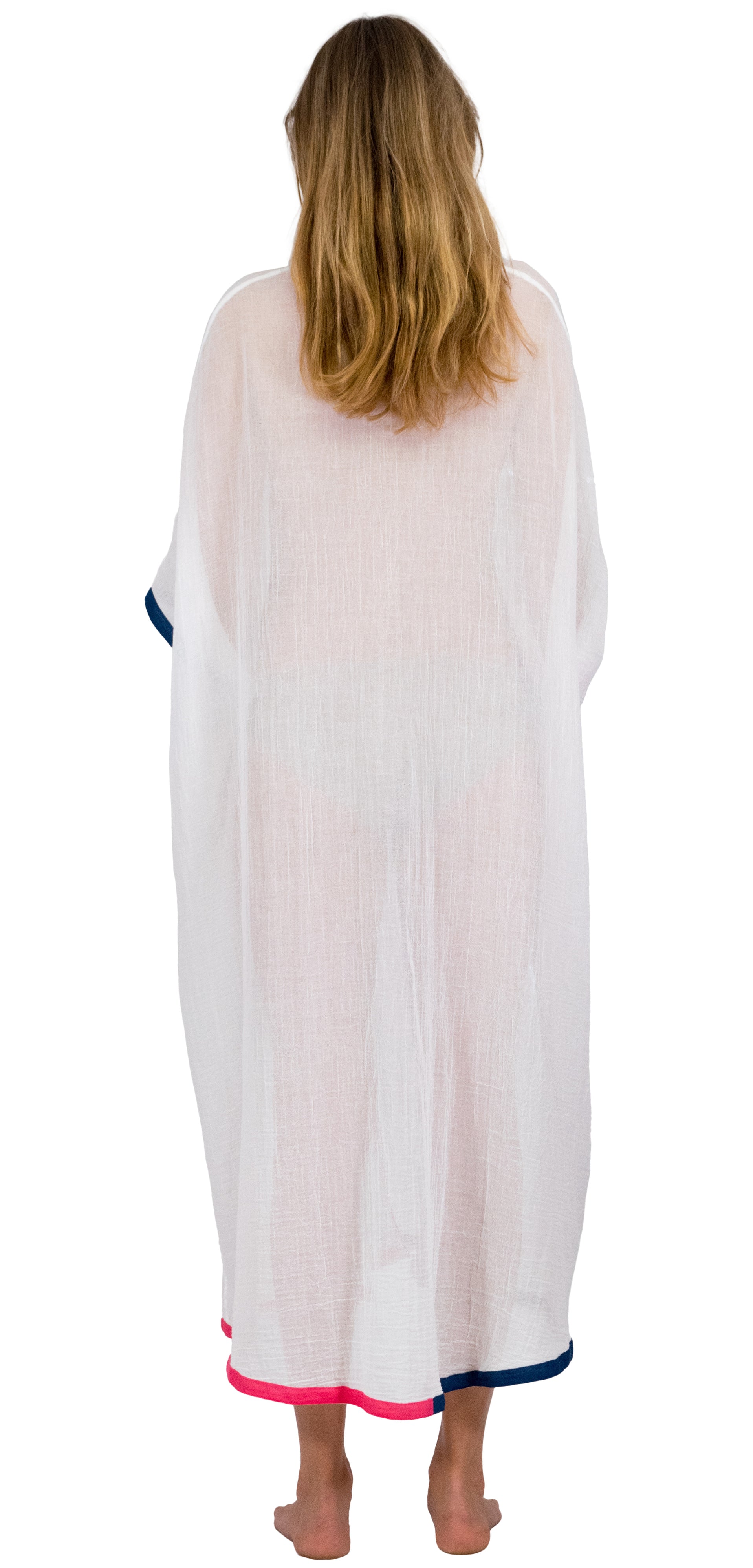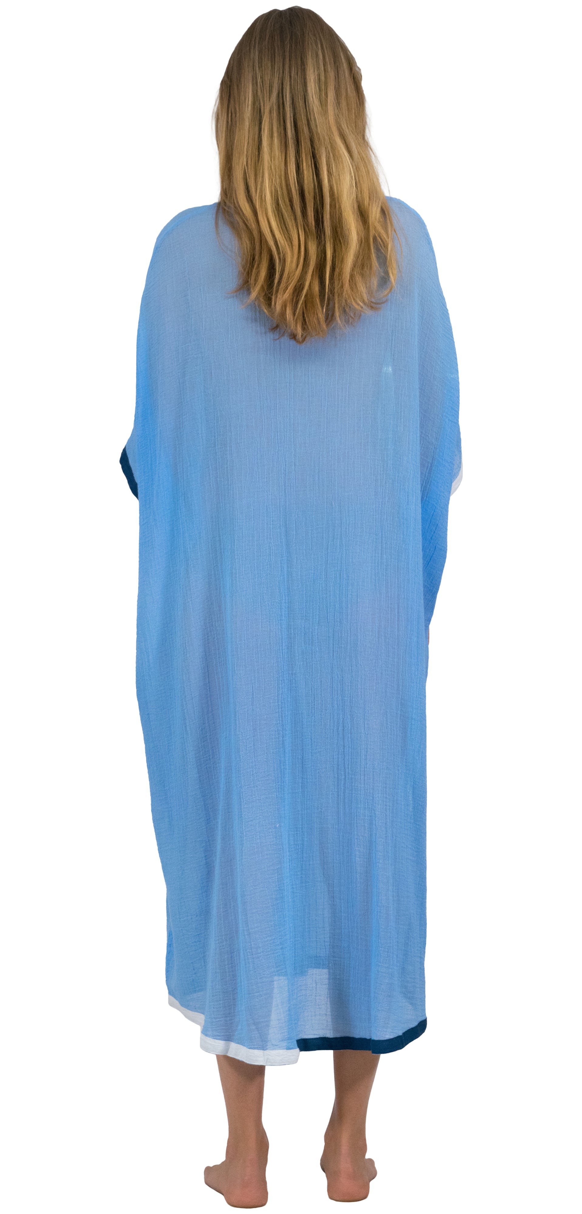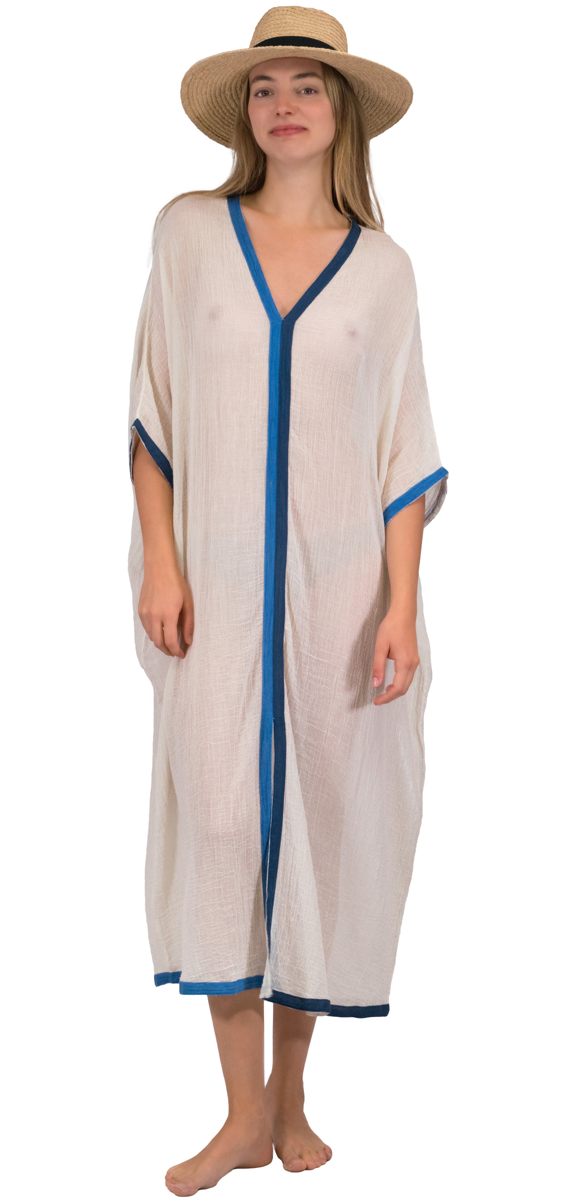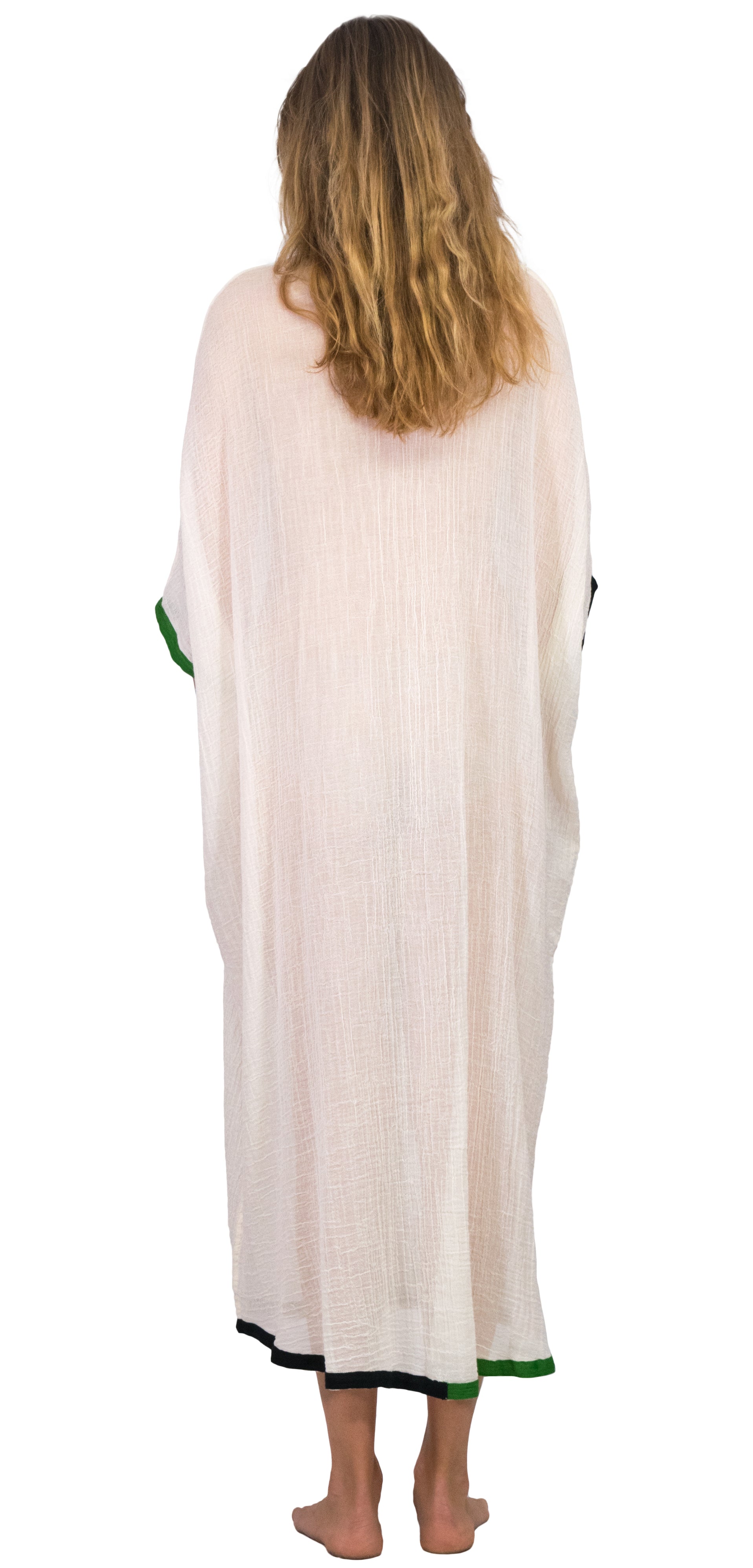 The Bee Tri Djellaba revisits our classic silhouette, edged with two contrasting tapes that frame the sides in refined color harmony. Light, fluid, and effortlessly chic, it’s the perfect piece to slip on over a swimsuit or wear through languid summer days.