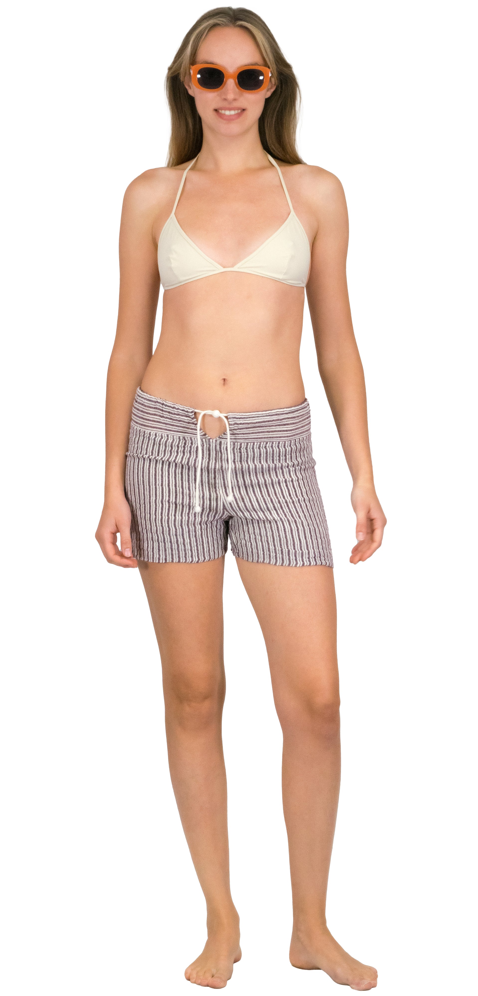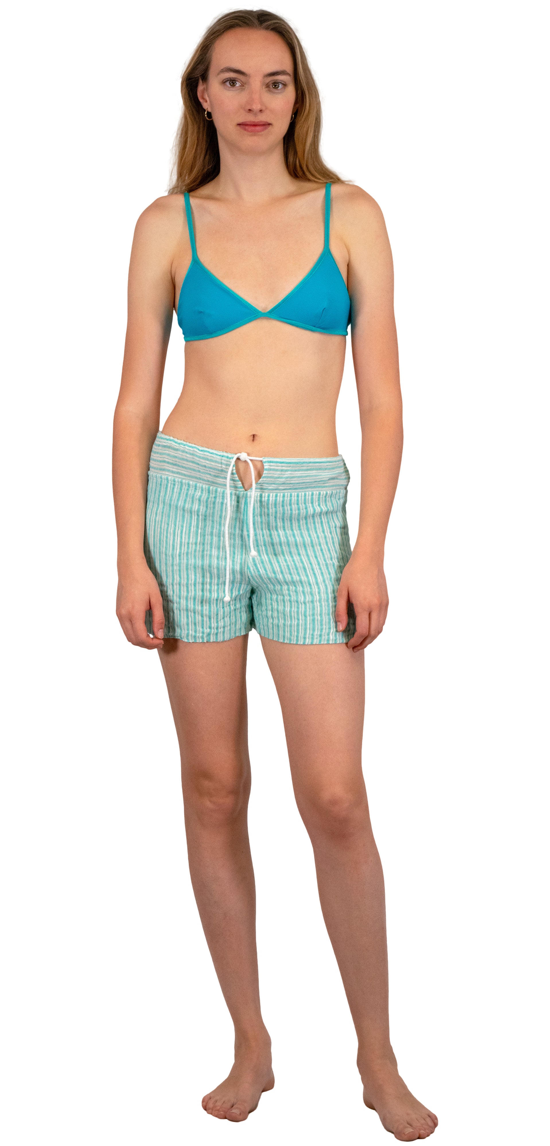 The Sam Shorts return in AMBAS’s iconic striped organic cotton gauze. Crafted in a double layer of fabric, with the top 5 cm around the waist left single for a lighter feel, they’re finished with an adjustable cotton drawstring for a flexible fit. Easy, airy, and effortlessly chic — the perfect summer essential.