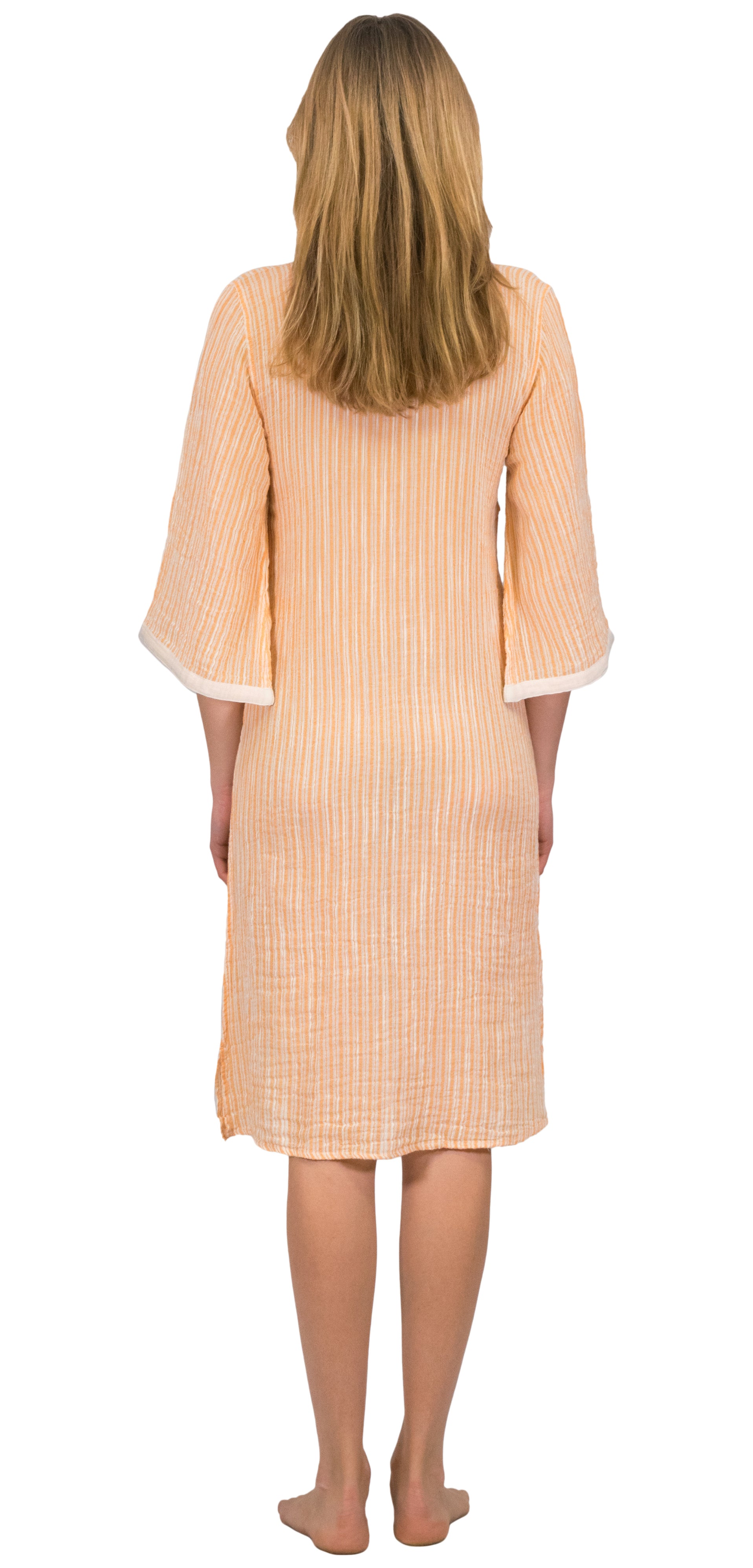 Our classic elegant tunic in our special stripe gauze comes with a contrast greige colour tape. 100% organic cotton garments designed in Italy, made and hand-dyed in India.
